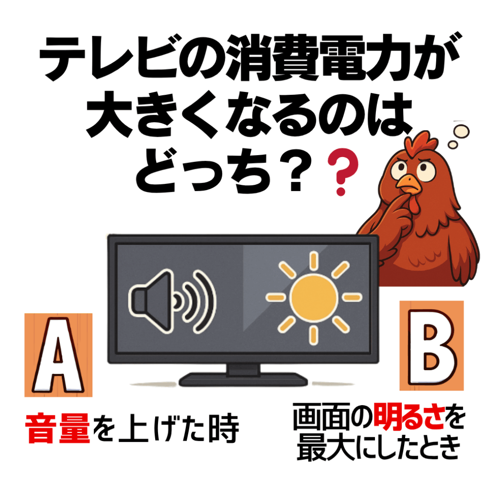 テレビの音量マックス(音量マックスにはなかなかしないけど…💦)と明るさマックス。消費電力が大きいのはどっち???